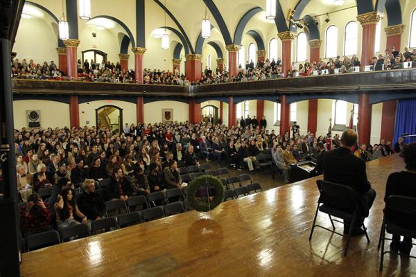 Led by Chaplain Kate Johnson, hundreds of staff, faculty, students and community members filled the hall to listen to reflections from Rector Cam Yung, Rev. Ruth Wood, and Capt. Ryan Carter, Chaplain at the Royal Military College of Canada.