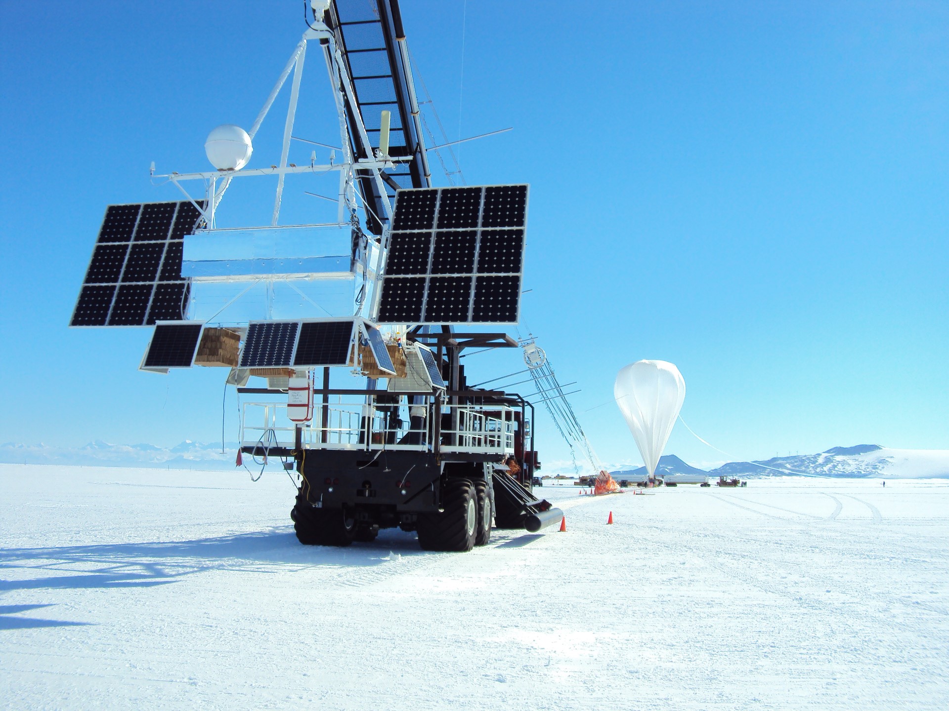 Photo credit: Stephane Coutu (Penn State University). This 2011 image shows a similar cosmic ray-detecting balloon from the CREST launch in Antarctica.