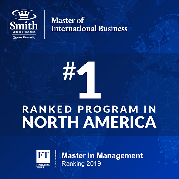The Financial Times has released the FT 2019 Masters in Management ranking, with Smith School of Business ranking first in North America and top 50 overall.