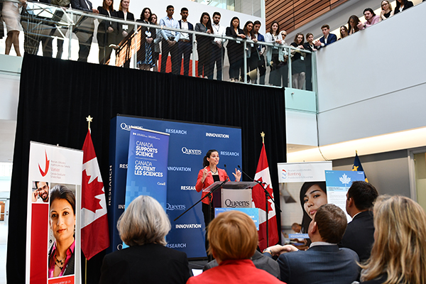 The Honourable Kirsty Duncan, Minister of Science and Sport, visited Queen’s University to talk about the promising future of university research across the country. At a special event, inside the newly-opened Mitchell Hall, the minister officially announced more than $35 million in funding for the Vanier Canada Graduate Scholarships (166 in total) and the Banting Post-Doctoral Fellowships (70 in total). This includes support for four Queen’s researchers who have earned Canada’s most-coveted prizes for PhD and post-doctoral scholarship.
