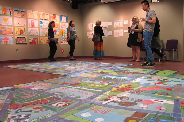 Students from Frontenac Public School and First Avenue Public School converged on The Studio Gallery at Queen’s Faculty of Education Tuesday for the unveiling of the 210 square foot mural representing their neighbourhood. The project, titled My Magical Neighbourhood, includes contributions from Grade 4 students.