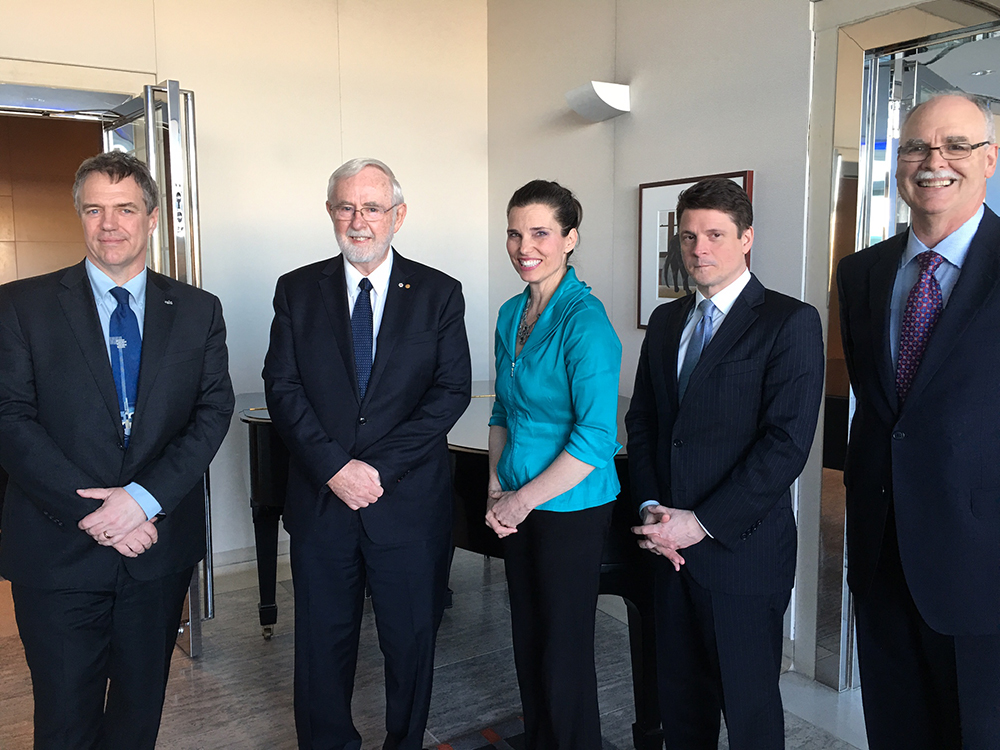 Following the NAS annual meeting, on May 2, Dr. McDonald visited the Canadian Embassy in Washington. The theme of the evening focused on international research collaboration, particularly the US-Canada collaboration on the SNO experiment and at the SNOLAB underground laboratory. Dr. McDonald, along with Dr. John Fisher (Vice-Principal, Research) and Nigel Smith (SNOLAB) gave presentations on the past, present and future of international collaborations at SNOLAB and the value of international collaboration in leading-edge research. Science Minister Kirsty Duncan was also on hand to reiterate the government’s commitment to international collaboration in science.