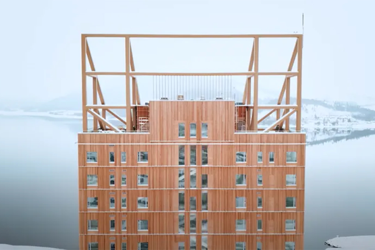 For the time being, the tallest wooden building in the world is the Mjøstårnet, an 18-storey building north of Oslo that houses offices, hotel rooms and apartments, and stands just over 85 metres in height.
