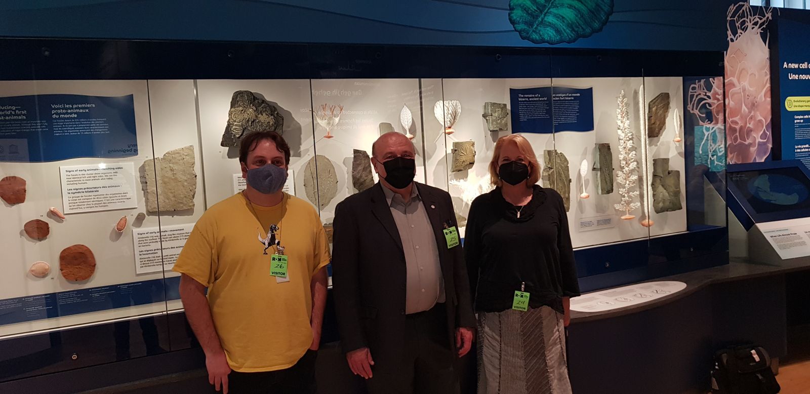 An opening event for the new gallery was held on Monday, December 6th. Queen's University Department of Geological Sciences and Geological Engineering attendees at the opening included Dr. Guy Narbonne, Dr. Carolyn Greentree, Adjunct Professor, Queen’s Department of Geological Sciences and Geological Engineering, Dr. Marc Laflamme, PhD’07, Associate Professor, University of Toronto, Mississauga, and Dr. Linda Tsuji, Museum Curator for the Miller Museum of Geology. Dr. Narbonne, Dr. Greentree, and Dr. Laflamme have all done extensive research at Mistaken Point, Newfoundland (UNSECO World Heritage Site)and other Ediacaran sites that contributed to the interpretations in the Mistaken Point display in the gallery, as seen in the image.