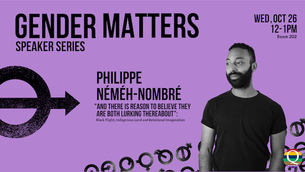 Gender Matters Speakers Series, Wed, Oct 26th, 12-1pm.