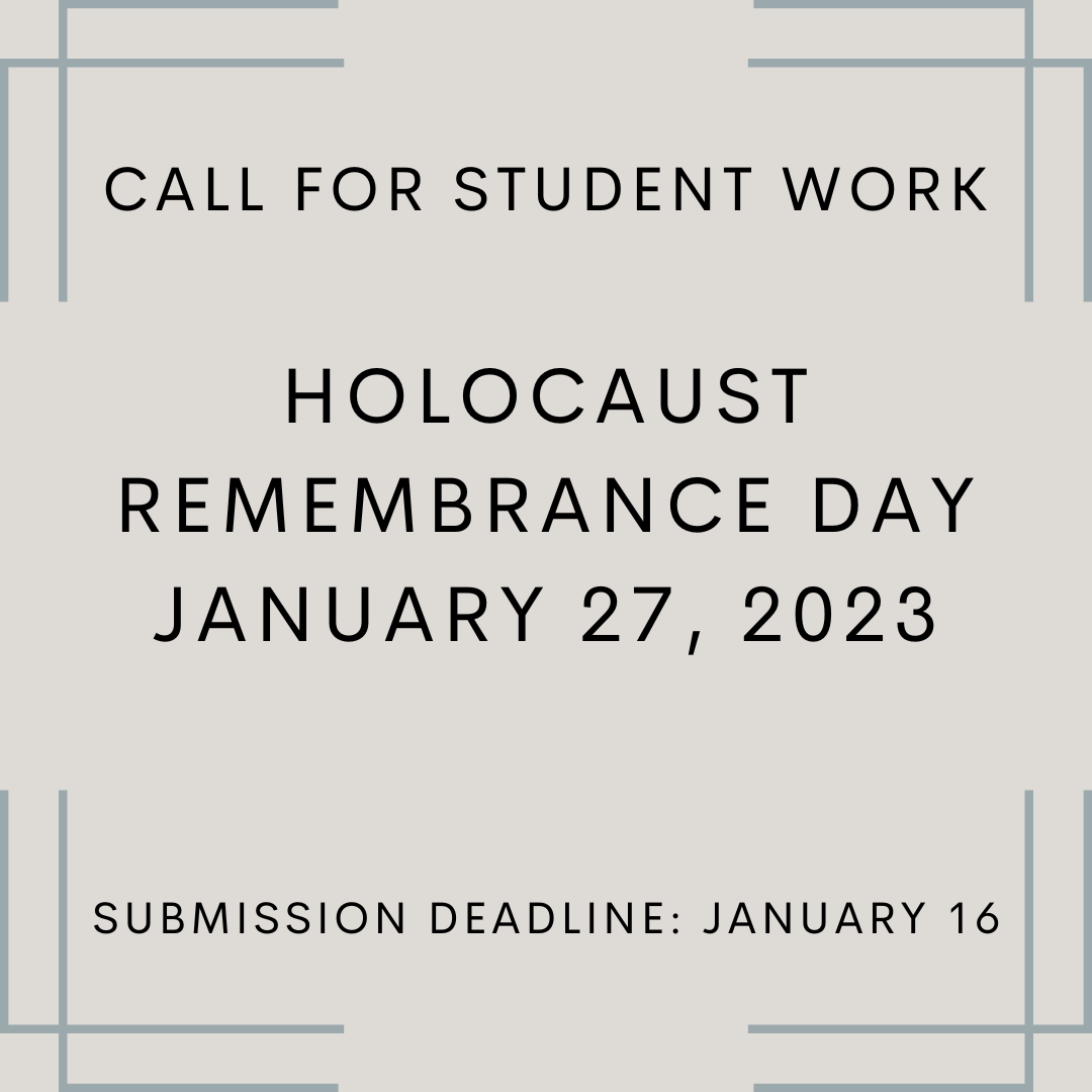 In honour of Holocaust Remembrance Day on January 27th, students are invited to share their research into Jewish history and reflections on the Holocaust and its legacies. If you have completed an essay or project in one of your History courses that addresses this topic, please consider submitting your work by noon on Monday, January 16th. Selected projects will be published on the Department of History website throughout the last week of January leading up to Holocaust Remembrance Day.