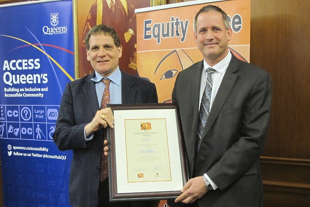 For the year 2012, the Employment Equity Award went to Dr. Mark Green. Mark served for 8 years as the Co-Chair of the Indigenous Council for Queen's University. During his tenure he was effective in raising awareness of Indigenous student issues and was involved in many initiatives that enhanced the climate here at Queen's for Indigenous students, staff, and faculty.