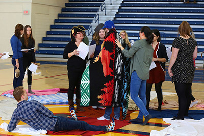 In a DEVS 200 level course, I was playing the role of the European in the blanket exercise. During the kicking of the blankets, I had been aggressive and exaggerated in my movements to show the loss of land and the huge power difference between European and indigenous people. As I passed a student while kicking the blankets, they resisted by stepping on the edge of the blanket and proceeded to mutter b***h under their breath. I was shaken by the hard and fast response but did not address it immediately because I did not want to guilt, shame or blame the student for their reaction. After the exercise, I was the facilitator for one of the talking circles, so it was my responsibility to de-brief and discuss the things I had been feeling so that I could carry on the other responsibilities I had. However, due to the nature of the comments made at me as the European, I left those comments out of circle, at my own expense, so that the person would not feel guilt or shame when I was speaking about the comment.
