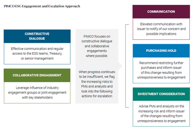 The following graphic provides an overview of PIMCO’s ESG engagement and escalation approach:
