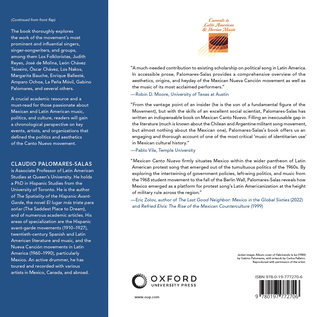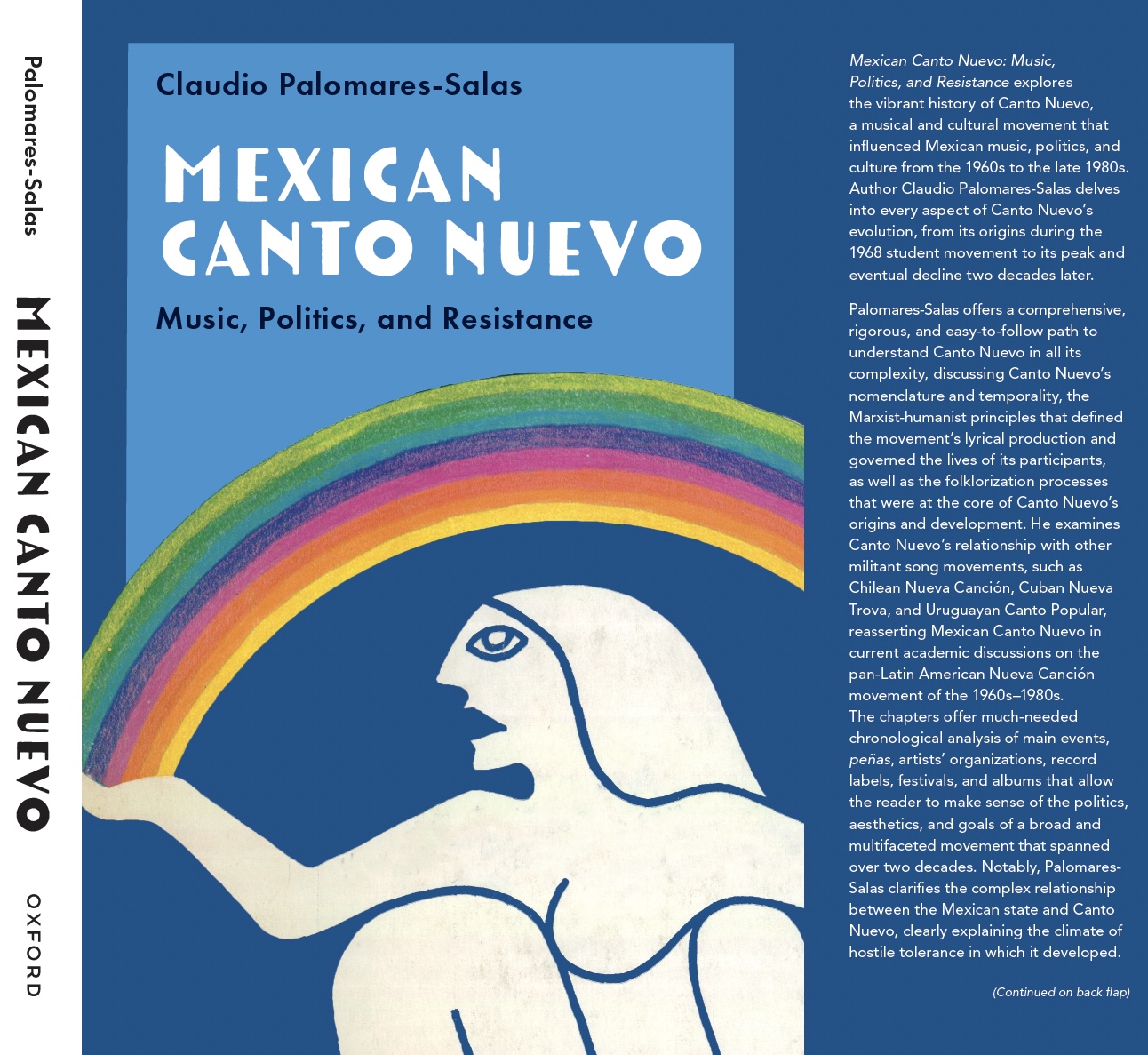 Professor Palomares-Salas has recently published a new book with Oxford University Press, titled Mexican Canto Nuevo: Music, Politics, and Resistance. The book explores the history of Canto Nuevo, a musical movement that significantly influenced Mexican music, politics, and culture from the 1960s to the late 1980s. Professor Palomares-Salas examines every aspect of Canto Nuevo's evolution, from its origins during the 1968 student movement to its peak and eventual decline two decades later.