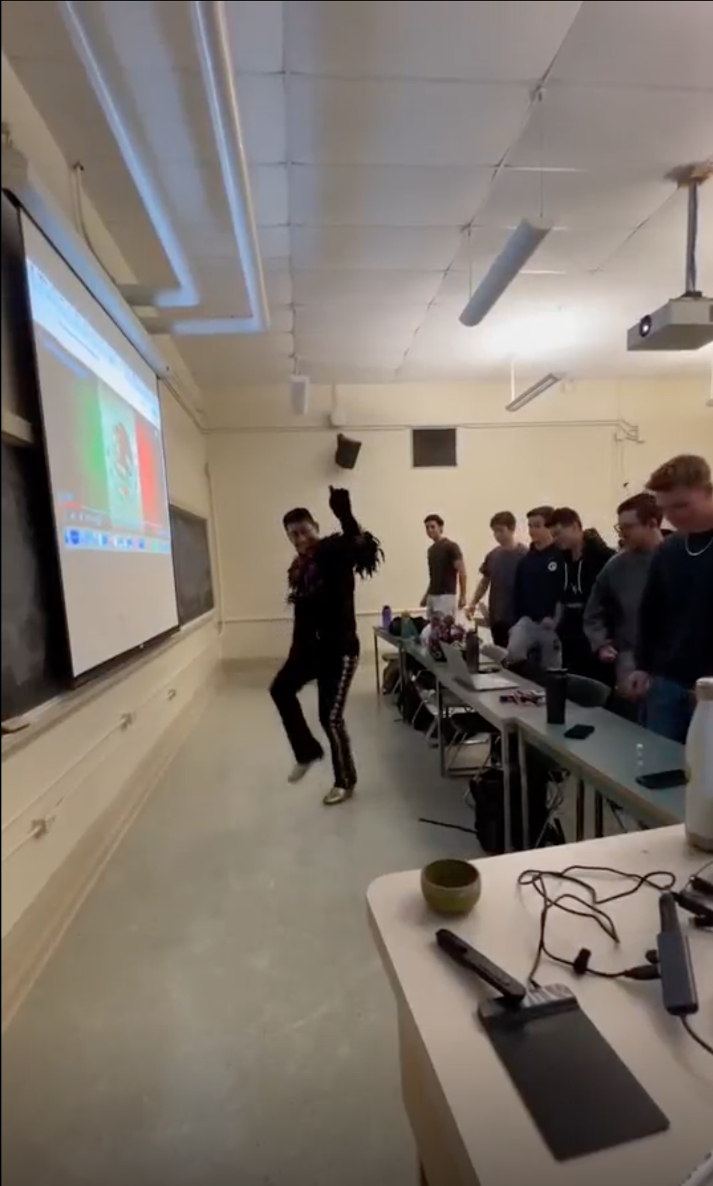 In early November, students in SPAN111 Sections 005 and 006 were treated to a special cultural experience when two dancers from the Mexican Folk Ballet Company in Toronto visited our class. This renowned Mexican dance company, established in Toronto, aims to share and preserve the rich history, culture, art, and spirit of Mexico through dance.