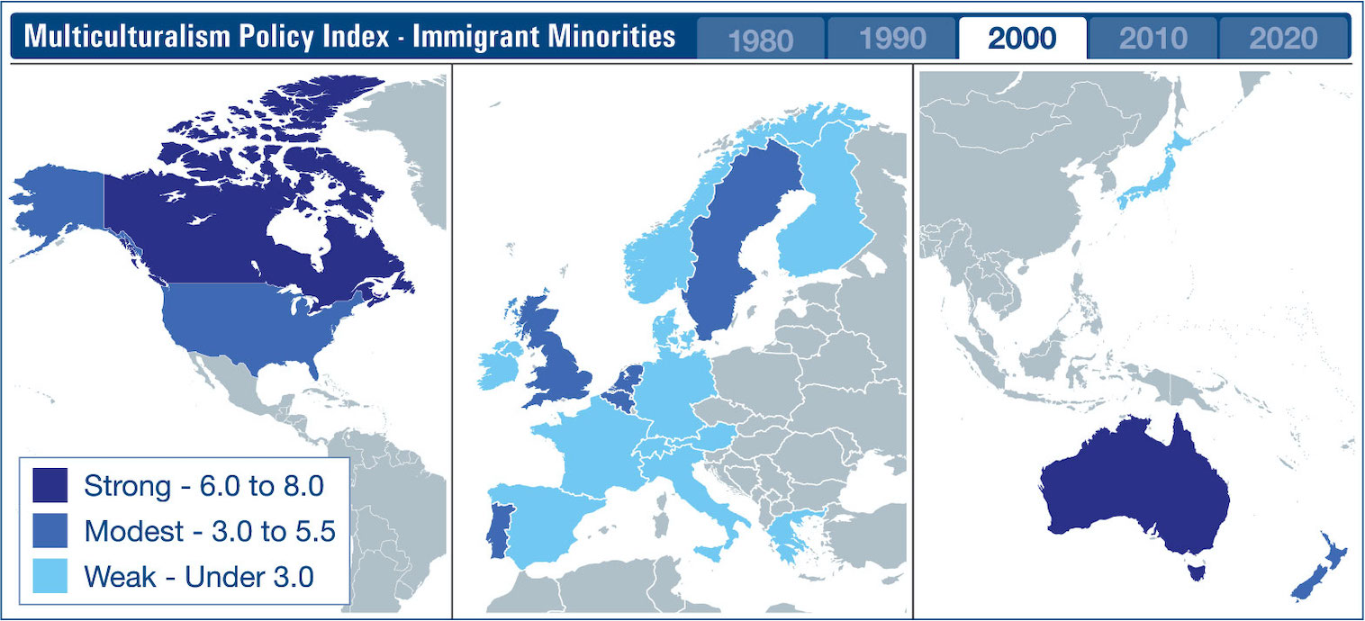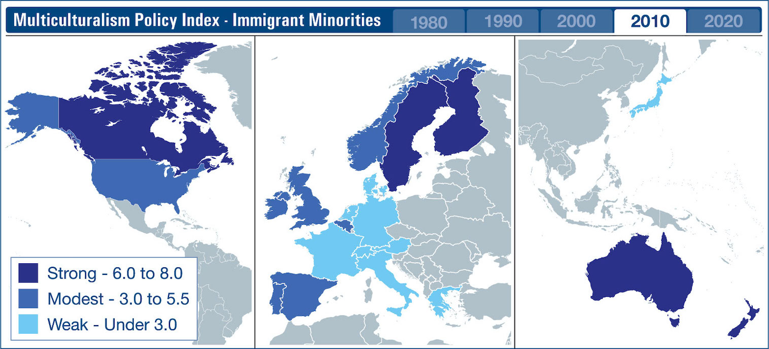 Maps Tracking Immigrant Multiculturalism Policies