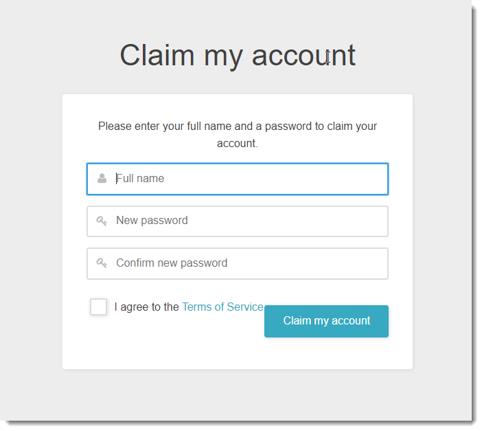 - You will be taken to a screen to confirm your name and password - it is recommended you use your Queen's password. Check the Terms of Service box and select the Claim my account button to proceed.