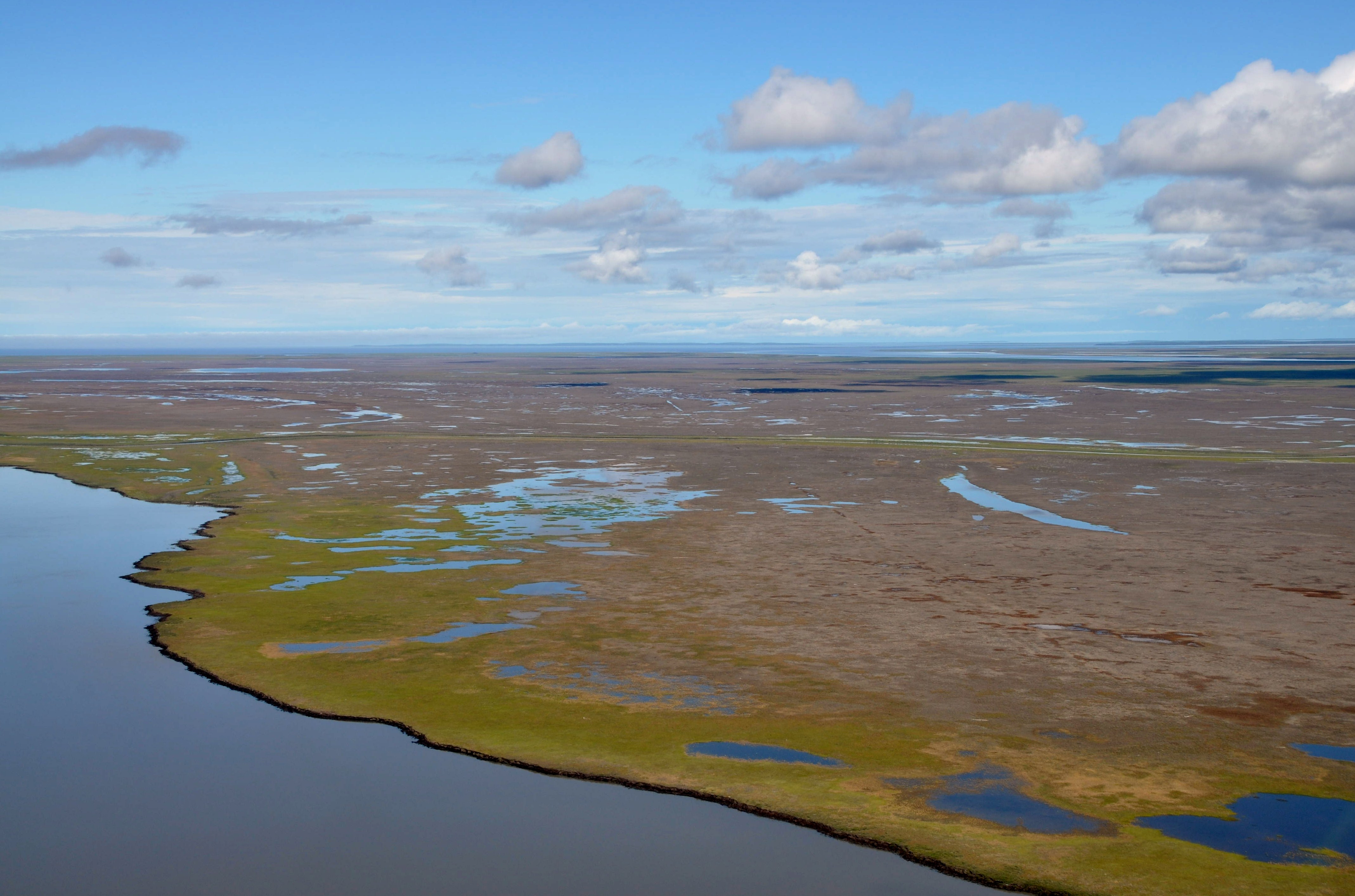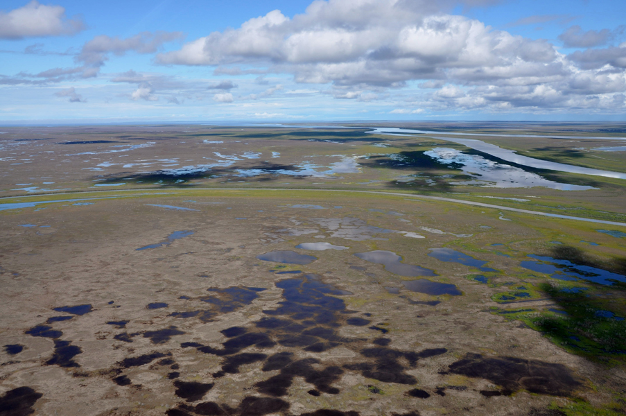 The Mackenzie Delta. Canada's largest Arctic delta is dominated by freshwater lakes and channels. Image courtesy of Joshua Thienpont (Queen's University). |