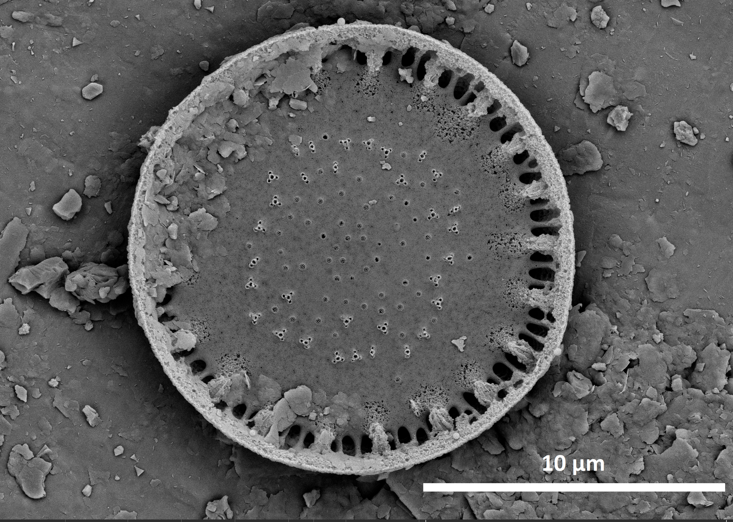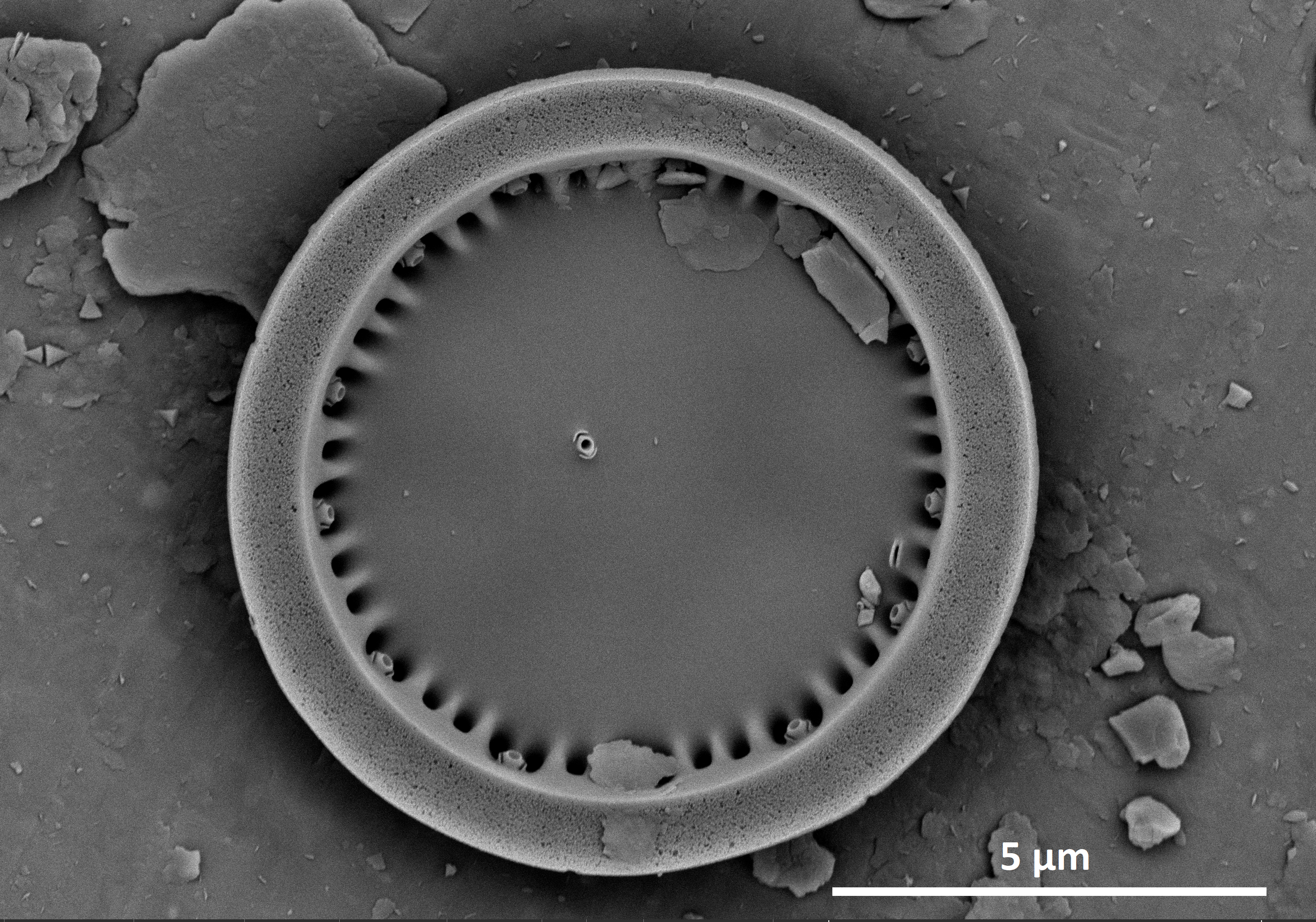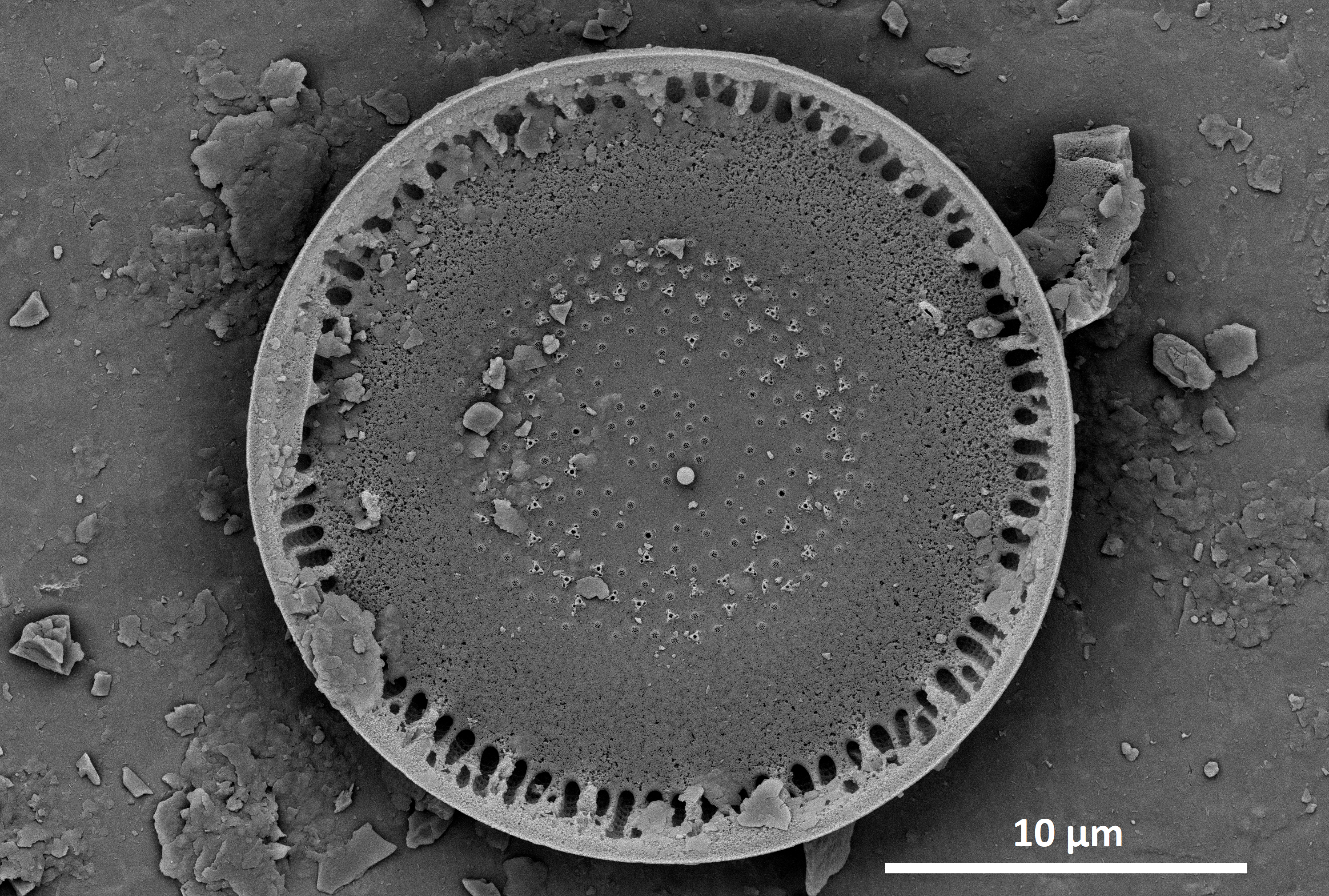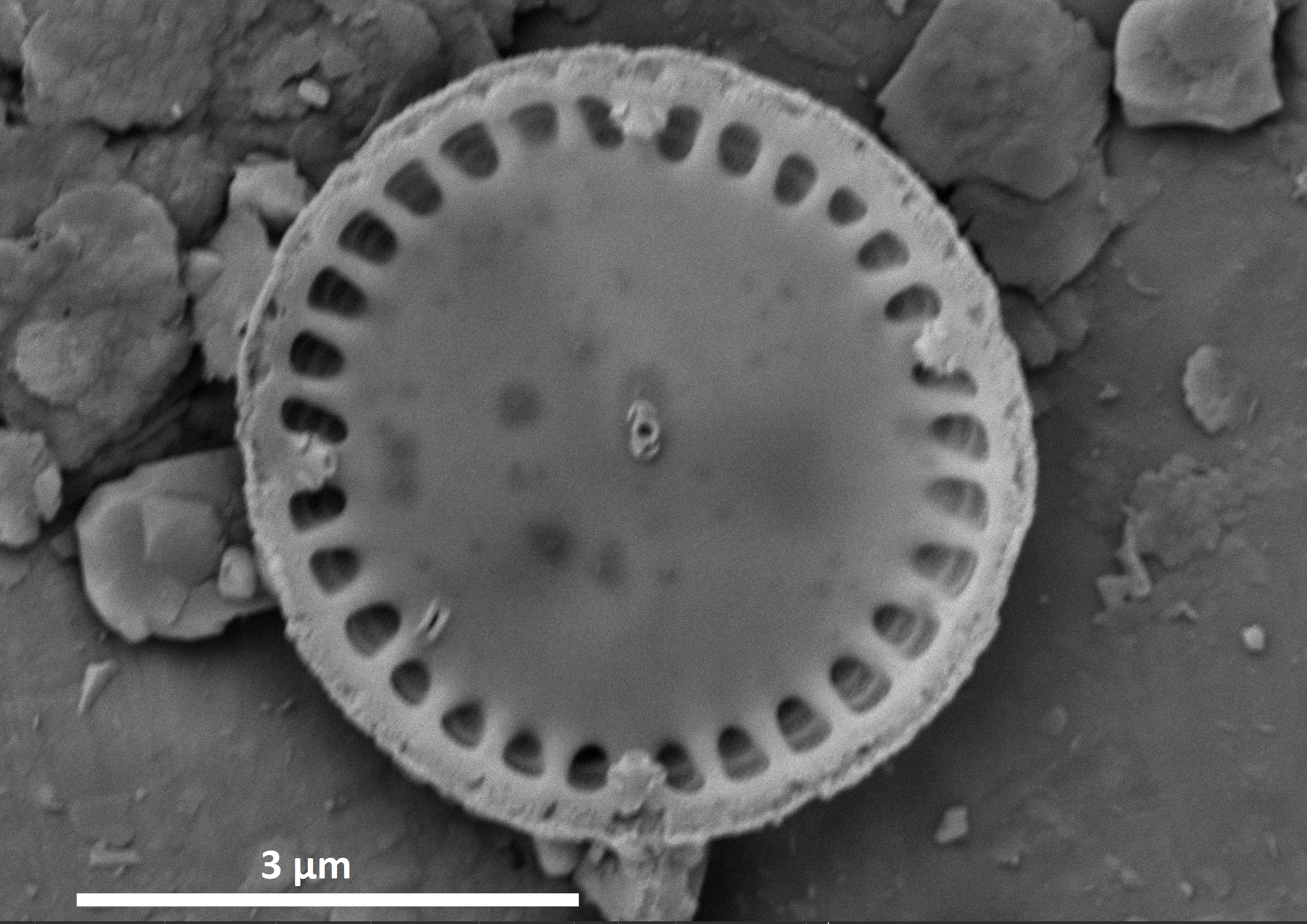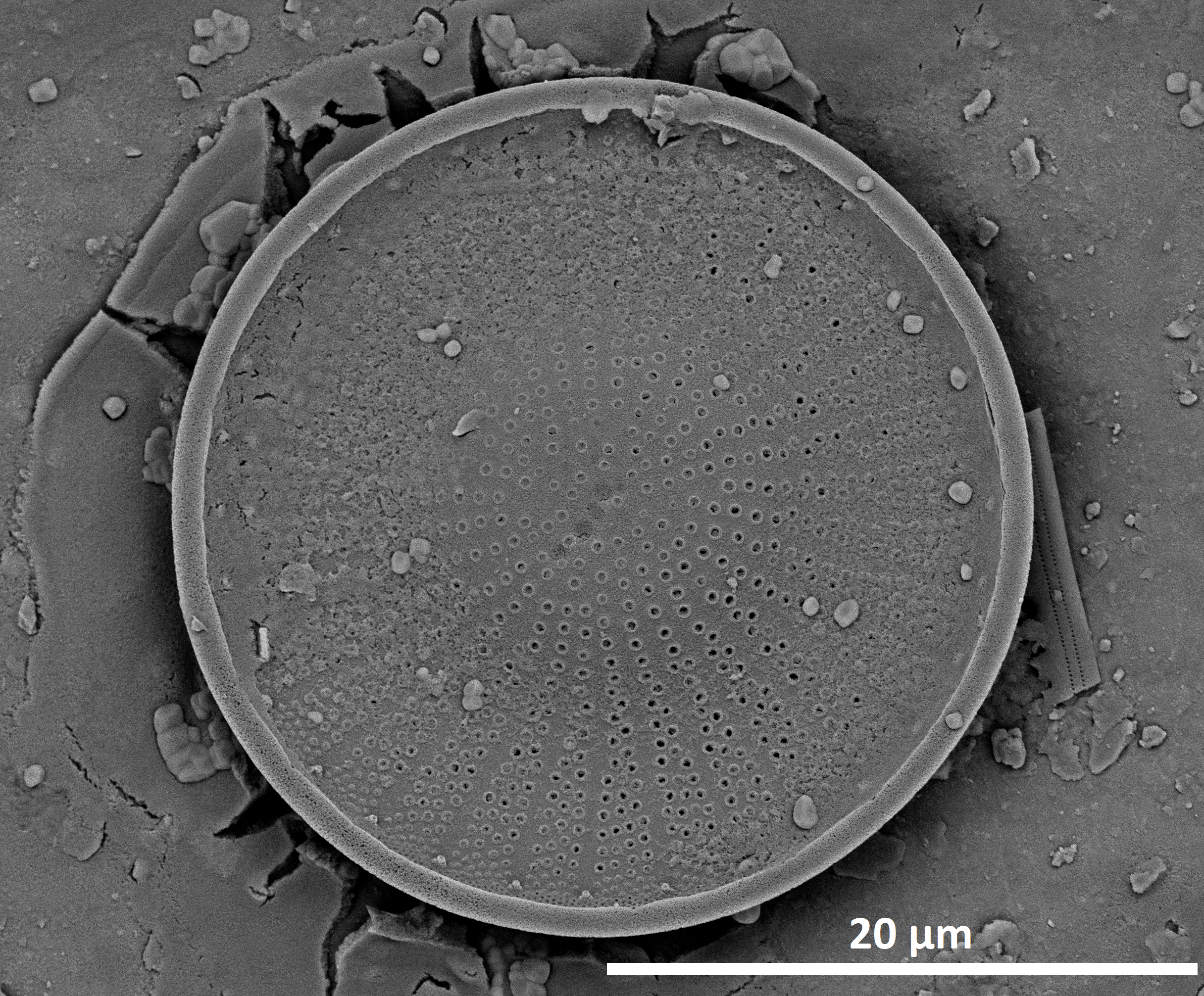 Valve of Stephanodiscus oregonicus (internal view), a relatively large-celled diatom that dominated diatom assemblages in the pre-2000 CE sediment samples of Great Slave Lake. No central fultoportula present.