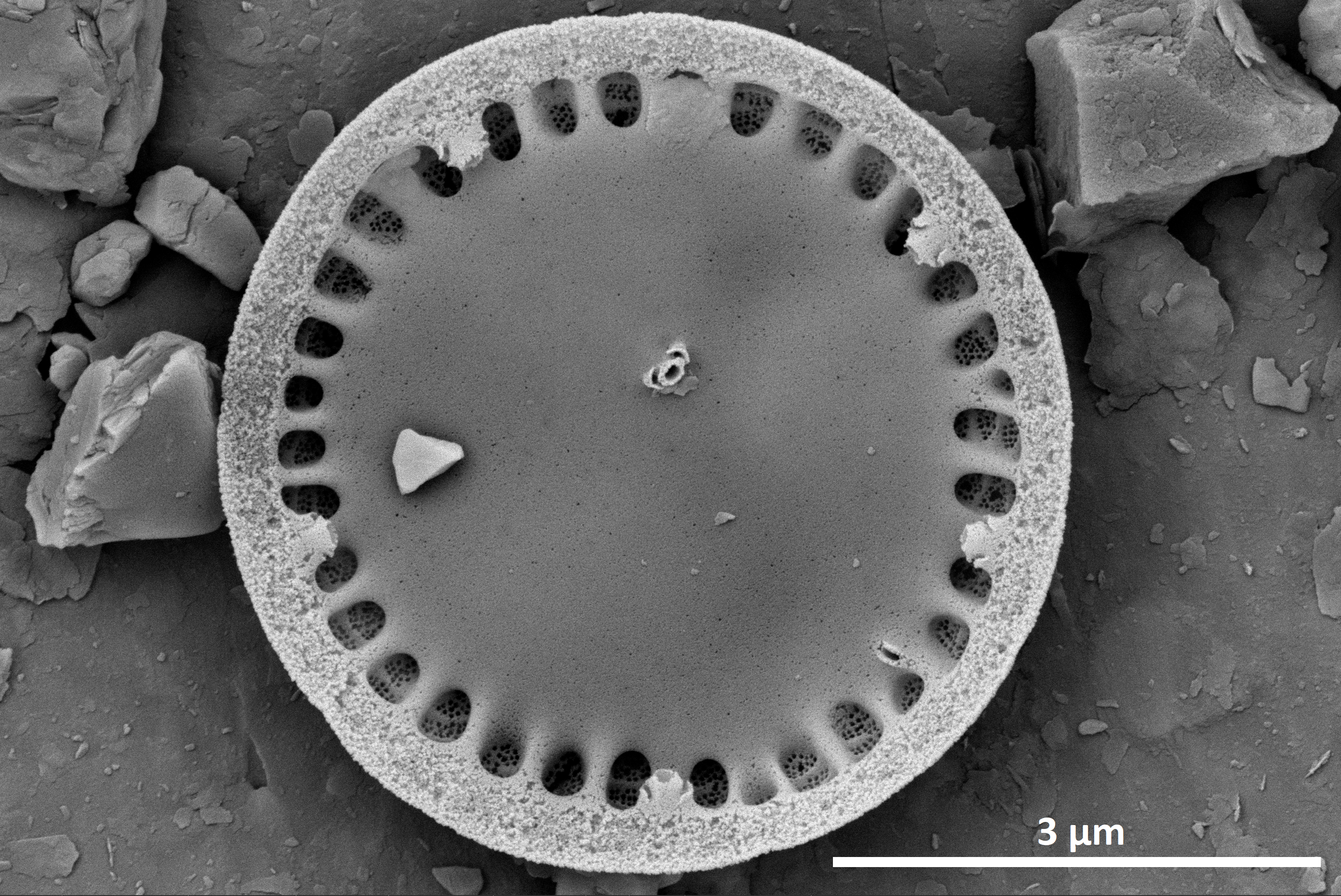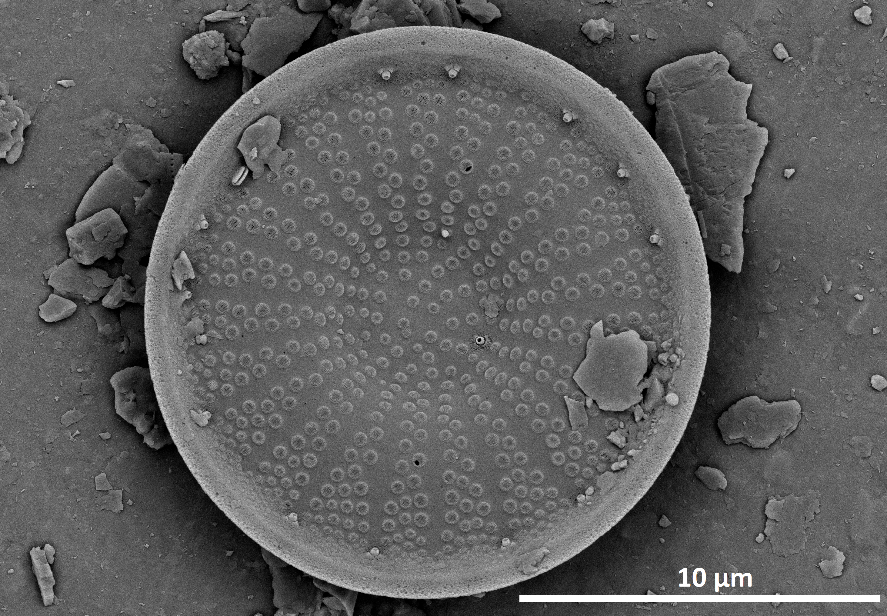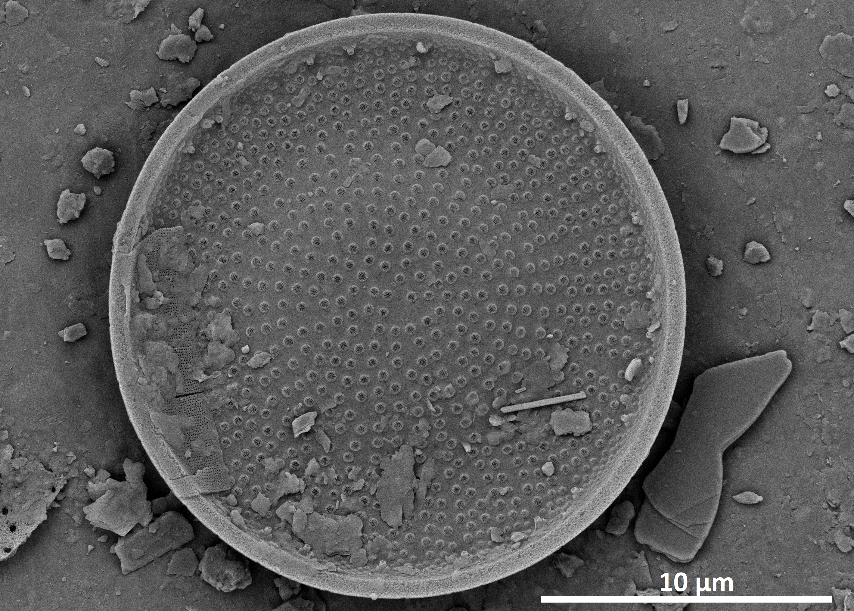 Valve of Stephanodiscus oregonicus (external view), a relatively large-celled diatom that dominated diatom assemblages in the pre-2000 CE sediment samples of Great Slave Lake. No central fultoportula present.