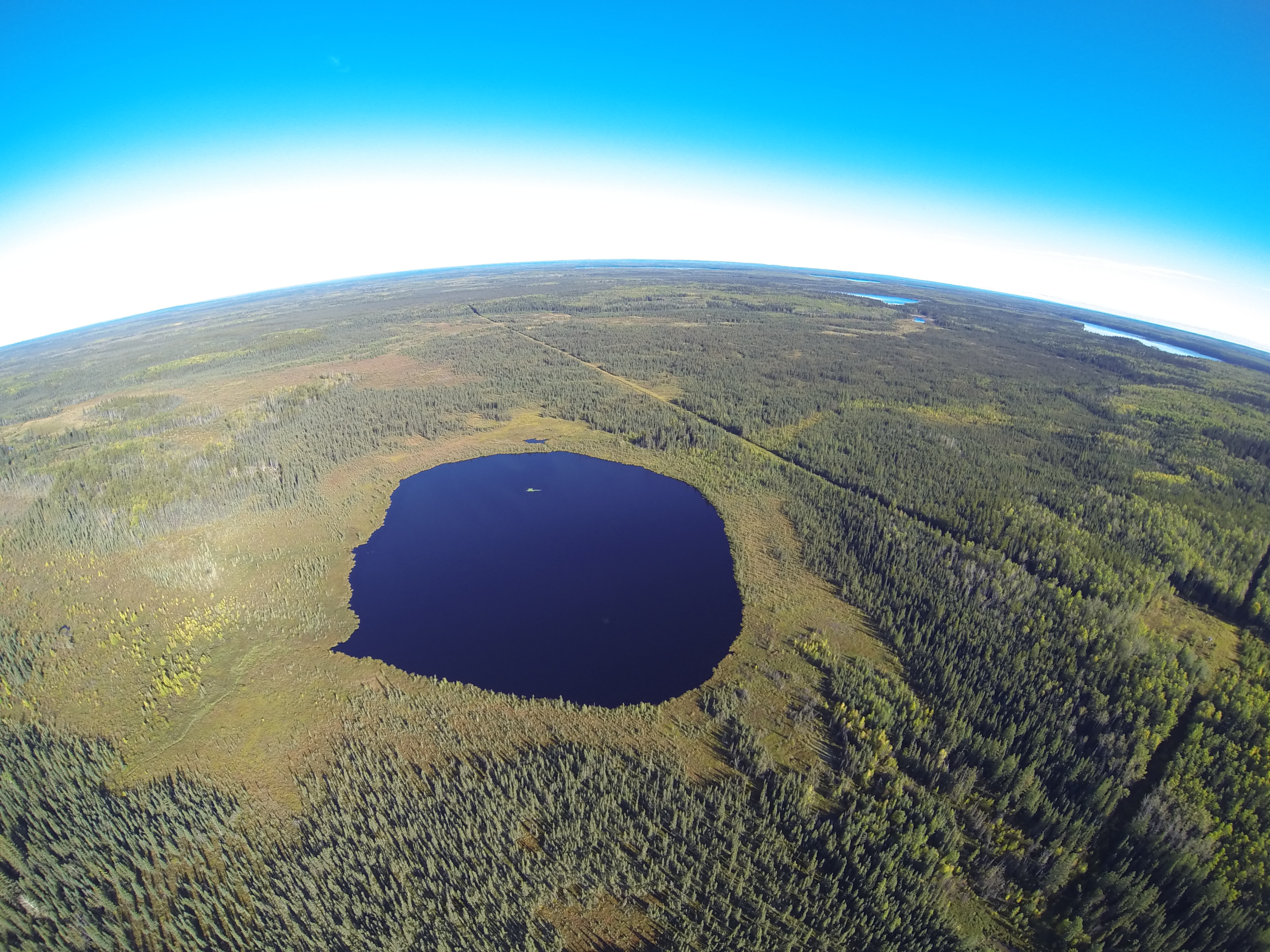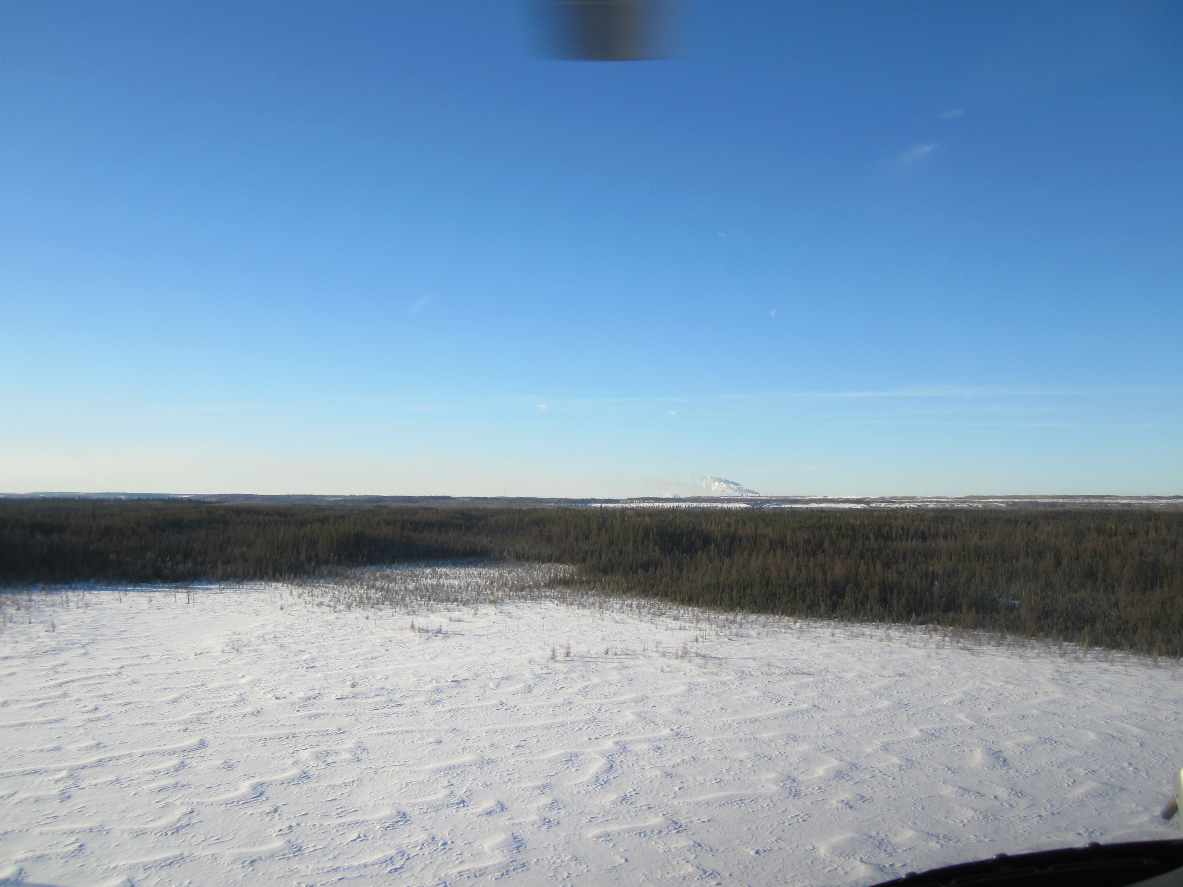 descending onto study lake ~20 km away from bitumen upgrading