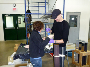 Sediment core being sectioned for analyses. Photo credit: Jane Kirk,