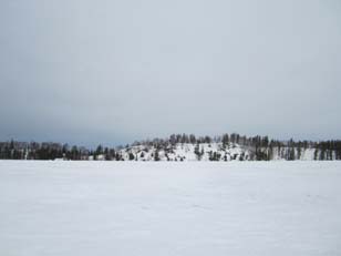 landing on ice-covered study lake ~ 20 km away from the main area of