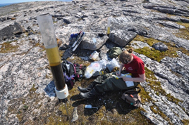 Common Eiders feed on marine benthic invertebrates, but nest on land on small, offshore islands. They have the potential to transport marine-derived nutrients from their prey species across ecosystem boundaries to the terrestrial environment of their nesting islands. Sources of such nutrients include excreted waste products (i.e. guano), carcasses, feathers, and egg fragments. Additionally, eiders use freshwater ponds to drink during incubation, and islands with these ponds are attractive breeding sites. This allows pond sediments to serve as an archive of the environmental history of an eider nesting island through time. In addition to spatially examining how eider nutrients transform coastal subarctic islands, we collected sediment cores and water samples from numerous nesting ponds in the region, varying in Eider impact, with the aim of improving our understanding of how past nesting numbers on islands have fluctuated. Sterols and stanols, which are present in varying concentrations and combinations in the feces of animals, have been used to track eider inputs to lake sediments over time. A ratio of plant sterols to cholesterol (found in eider guano at high concentrations), has been termed the "seabird ratio", and provides a means, both collectively and independently to δ15N, for tracking changes in bird inputs to ponds. We also continue to examine changes in diatom assemblages and sedimentary chlorophyll a spatially and temporally to understand how aquatic ecosystems respond to eider nutrient fluxes.