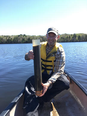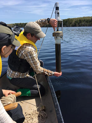 At each study lake, we collect a variety of limnological data: measures of pH, Secchi depth, conductivity, and water temperature. We also measure dissolved oxygen concentrations and temperature at 1 m intervals throughout the water column with a YSI probe. Finally, we collect water samples to test them for a full suite of water chemistry measures (including nutrients, major ions, metals). Each lake is also cored at the deepest point in the lake, where the maximum sedimentary material collects. Sediment cores are then sectioned into 0.5 cm intervals for further analyses.