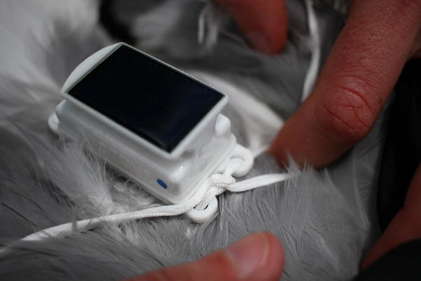 To understand the movement of Herring (Larus argentatus) and Great black-backed gulls (L. marinus) we will trap gulls in known breeding colonies including Bear Island and Brier Islands and attach GPS and VHF tags. This data will be used to assess if gulls travel to mink farms. Preliminary results from data collected from four birds with solar powered Ecotone tags (below) have shown that gulls from the Bear Island colony do travel to nearby mink farms.