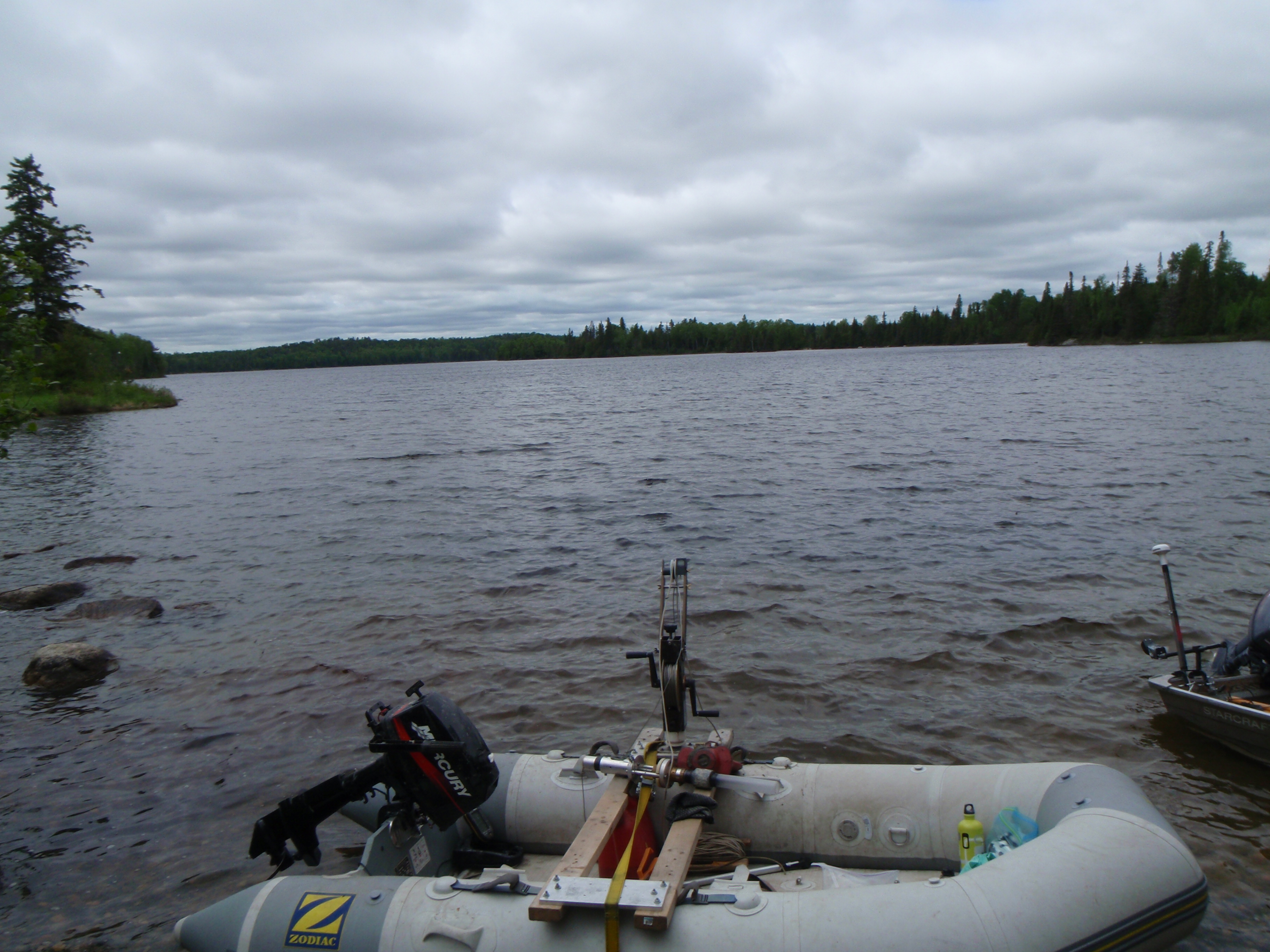 Field Trip # 2 (7-23 July, 2008) Seismic reflection data collection: A crew of 3 personnel (project collaborator Dr. Mike Lewis, project volunteer Dr. Thane Anderson and MSc student Melanie Kingsbury) collected seismic reflection data of the 8 lakes selected during field trip # 1. The general objective of field trip # 2 was to acquire information about the thickness and distribution of sediments in the 8 selected lakes. The sediment of interest is the upper part of that which accumulated since the lakes were isolated from the last ice cover or glacial Lake Agassiz (Fig. 3 in CRD annual report).