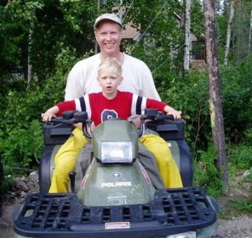 Photo of Brian Cumming and "field assistant" on location at Quetico Provincial Park (Ontario). Please note that photo was staged and PEARL endorses the use of required safety equipment when using recreational vehicles.