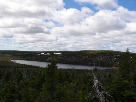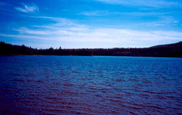 Photo taken in June, 2004. Note snow on hill behind lake.