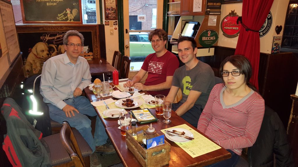 Riley and the group celebrate in the evening at the Kingston Brewpub.