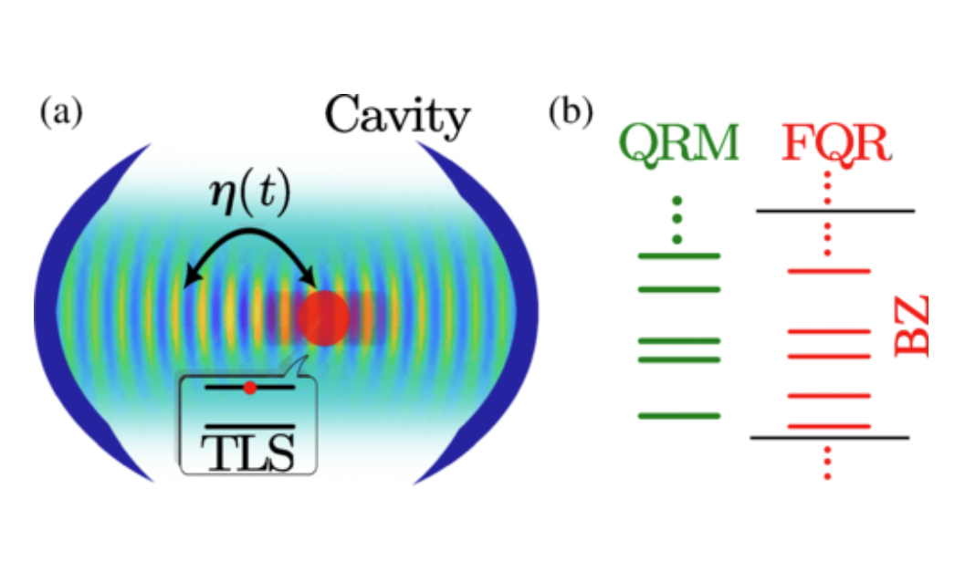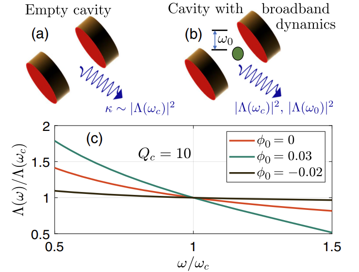 The second PRL, What Is the Spectral Density of the Reservoir for a Lossy Quantized Cavity?, considers a quantum two-level system coupled to a lossy three-dimensional cavity mode, and using a rigorous quasinormal mode expansion for the photonic medium, the authors show that the frequency dependence of the quantum coupling interaction between the cavity and its photonic reservoir is not independent of the cavity contents (as is widely thought). For the single quantum emitter, they identify the correct form of the local spectral density, revealing a surprising gauge-dependent frequency scaling factor, as well as a spatially dependent correction factor. The authors thus establish the correct quantum form for the cavity-reservoir interaction, which so far has only been worked out rigorously for simple 1D geometries and show its significant impact on broadband strong coupling.