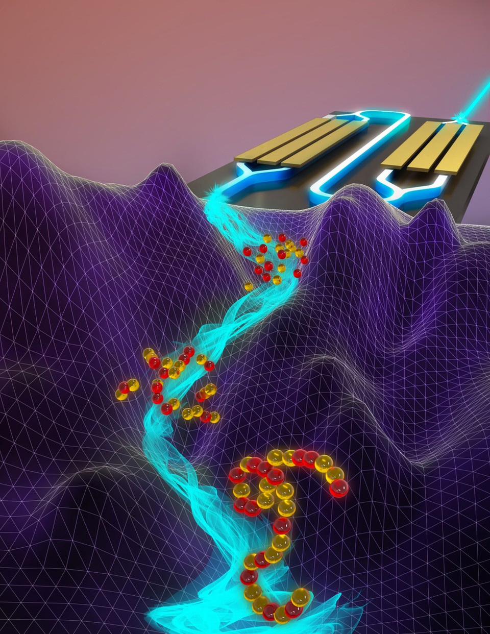 Left: Light solves complex problems by exploring an energy landscape in search of equilibrium. Click image to enlarge.