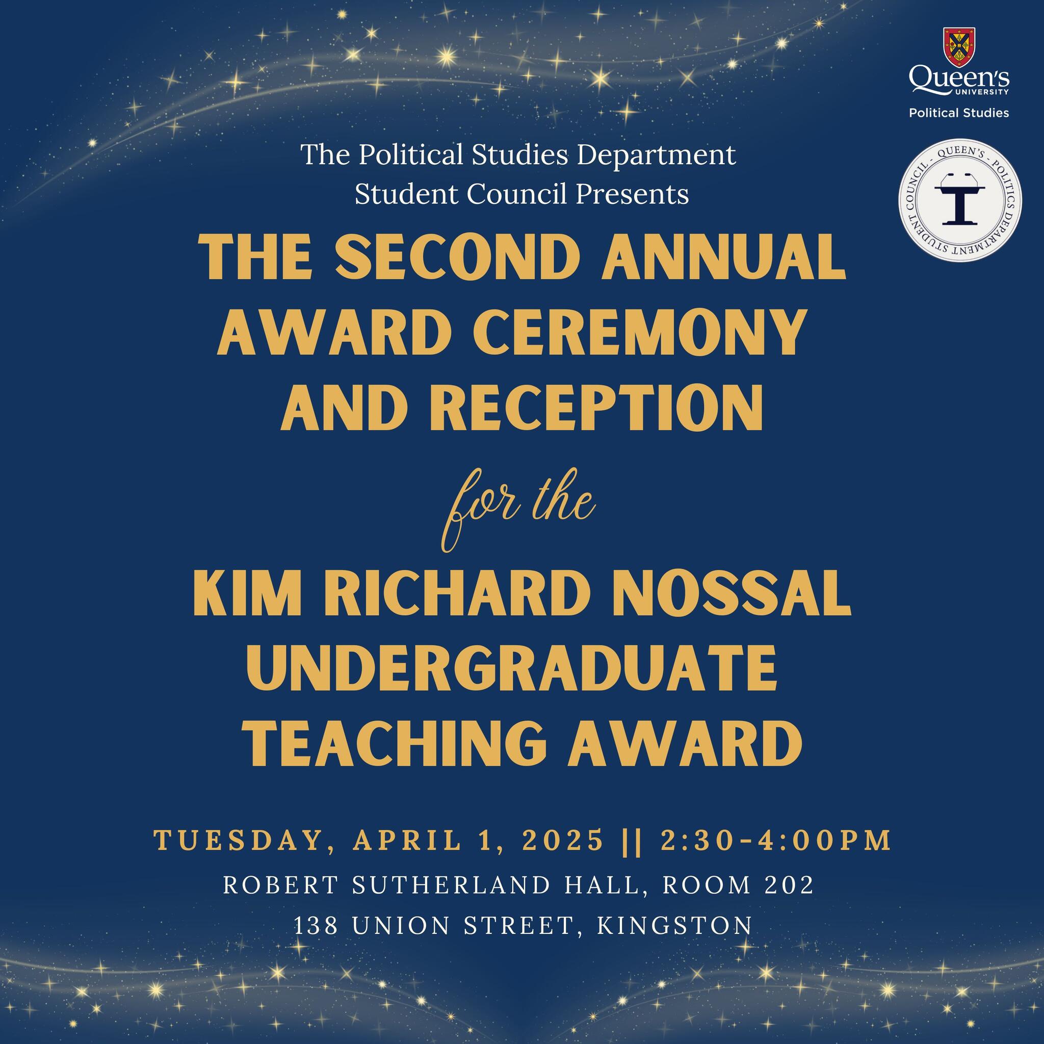 The Kim Richard Nossal Undergraduate Teaching Award Second Annual Awards Ceremony and Reception