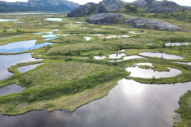 Queen's Art of Research Submission: Ponding Patchwork from Permafrost Thaw by Jordan Beer, MA Student (Geography and Planning), Paul Island, Labrador