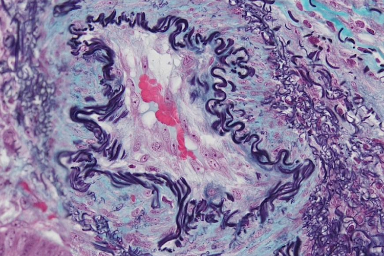 Queen's Art of Research Submission: Elastic Trichrome Stain on Human Colon by Lee Boudreau, Staff (Canadian Cancer Trials Group), Tissue Bank, Queen's University