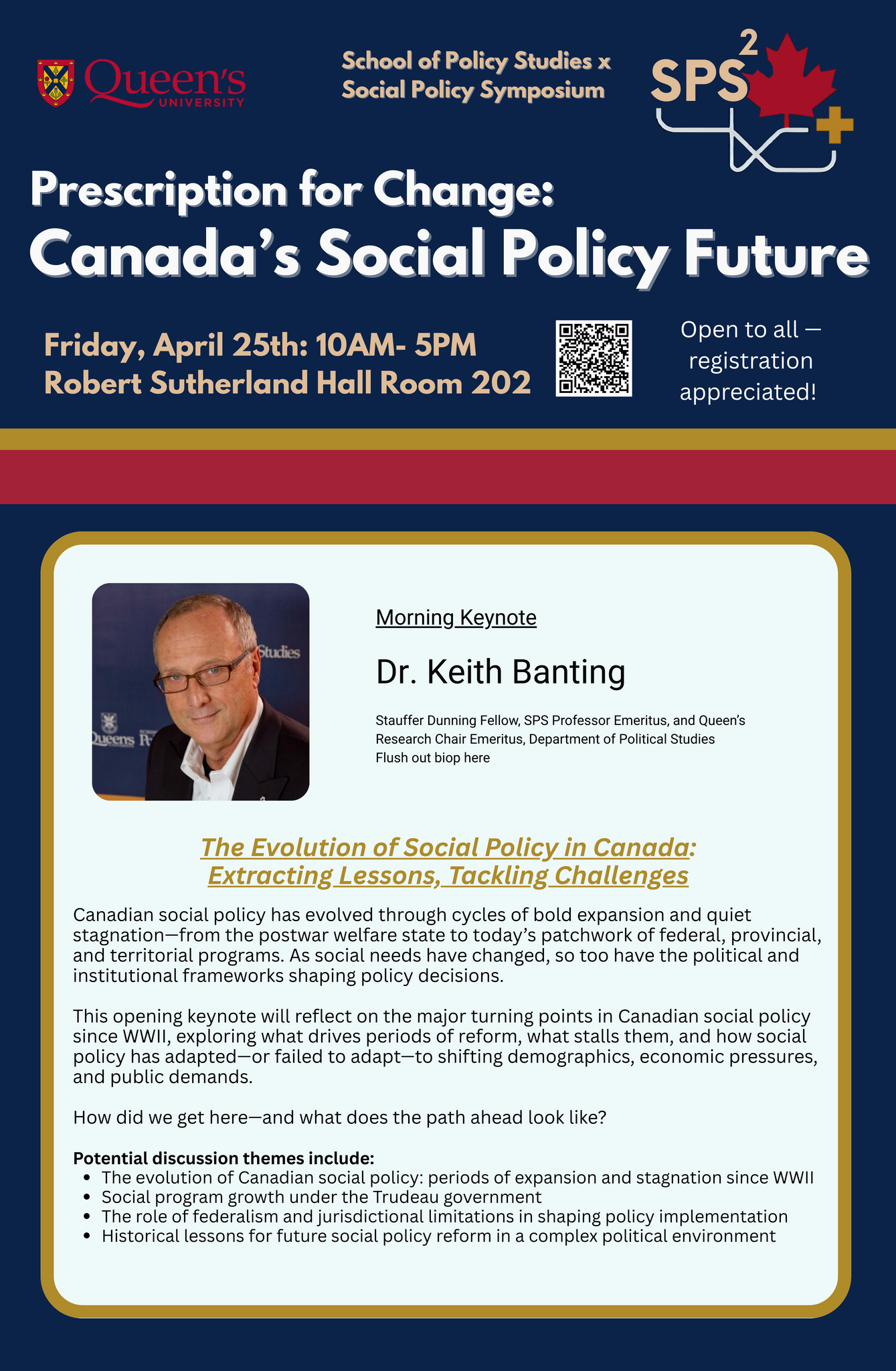 Session #1/Opening Keynote: The Evolution of Social Policy in Canada: Extracting Lessons, Tackling Challenges. Opening Keynote Speaker: Keith Banting |