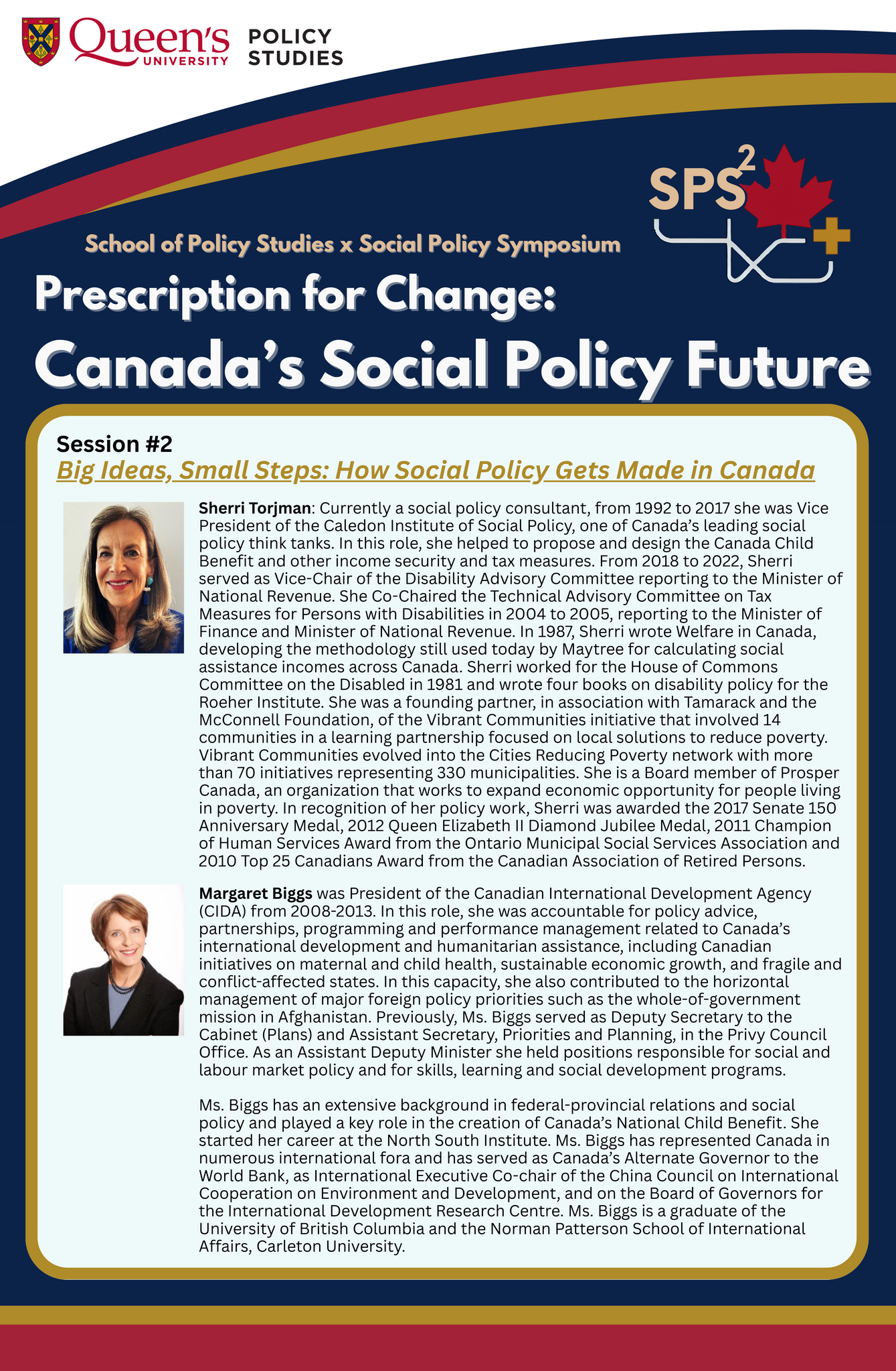 Session #2: Big Ideas, Small Steps: How Social Policy Gets Made In Canada Panelists: Margaret Biggs & Sherri Torjman |